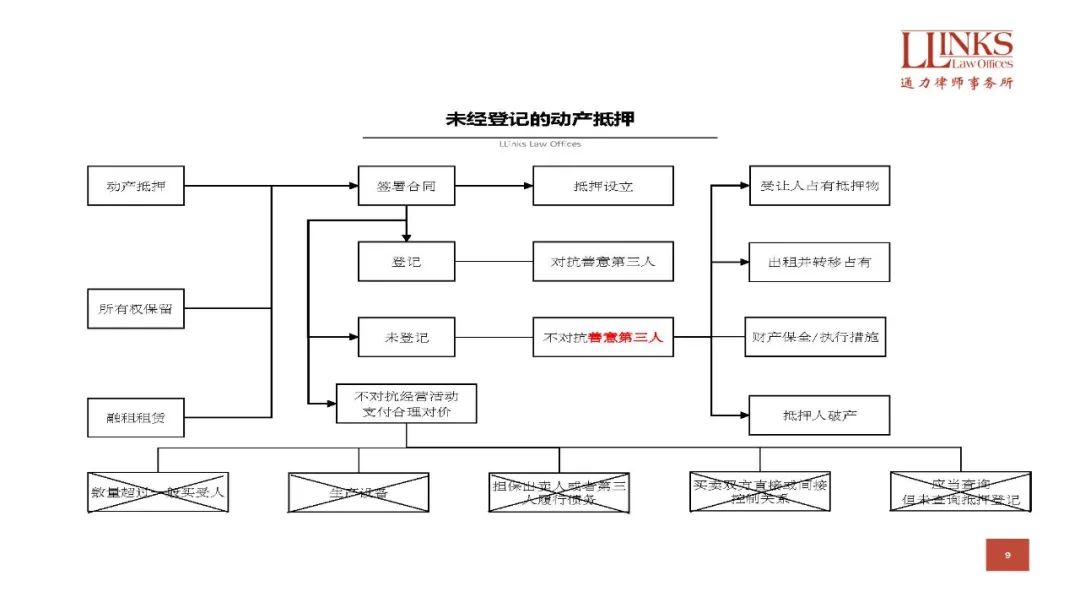 所以,如果擔保物是抵押人日常經營范圍內的商品,那么即便辦理了登記,仍然有可能因為正常的買賣交易而喪失該等抵押物。如果綜合考慮上述因素,在不考慮抵押人破產的情況下,我們可以給出的建議是: