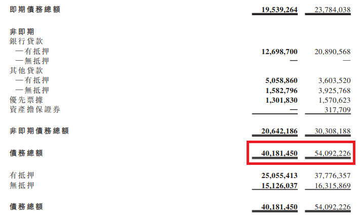 其中包括銀行及其他借款約316.81億元,優先票據約81.81億元、及資產擔保證券約3.19億元。