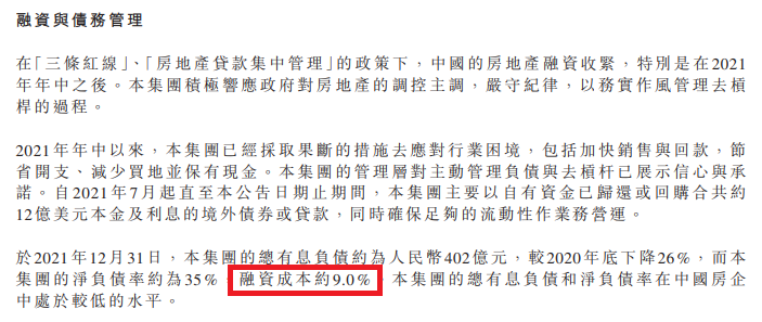 而根據年報披露,中梁控股2021全年加權平均債務成本為9%,上漲0.5個百分點。