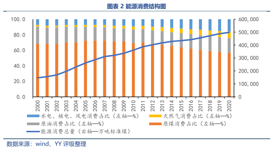 另一個是側面是,能源結構的調整在負責任的進行著,2030年碳達峰,2060年碳中和的時間表徐徐展開,而對化石能源的碳達峰更是提前到2025年,時間緊,任務重,斜率陡峭。