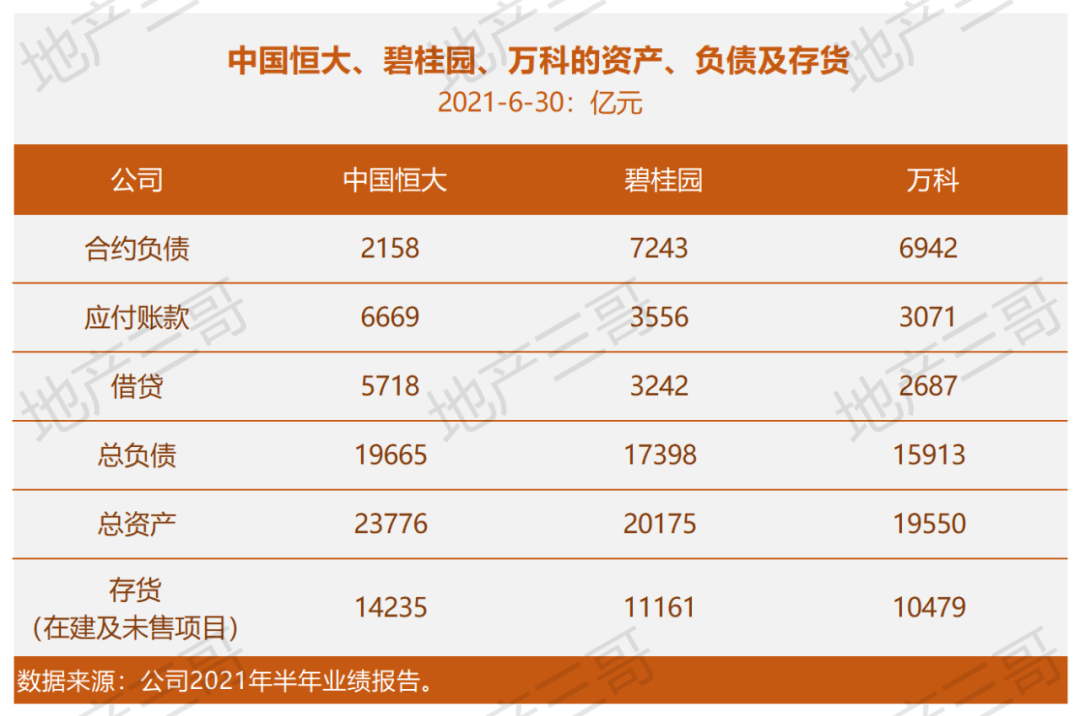 恒大和碧桂園、萬科最大的不同是負(fù)債結(jié)構(gòu),它的負(fù)債來自于借款和商票的比例遠(yuǎn)高于后兩家,萬科和碧桂園來自預(yù)售款的負(fù)債明顯高于恒大。