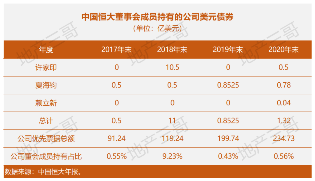此外,如果說2019年期間,許家印已經(jīng)料到恒大今日之困局而提前出售自己持有的公司美元債券,也不合情理。