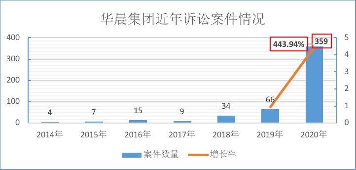 從公開查詢到的涉及華晨集團的訴訟案件已明確表明了這一點。2020年華晨集團涉案數(shù)量激增,從2019年的66件增加至2020年的359件,增長率443.94%,其中華晨集團作為被告或被申請人身份的案件數(shù)量達90%。而這還只是已經(jīng)公開的訴訟案件,未公開的仲裁案件或潛在的案件肯定也不在少數(shù)。