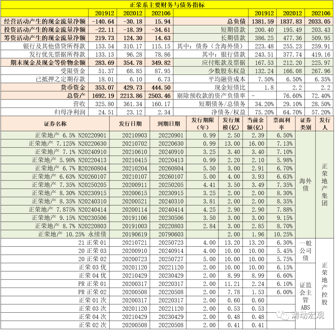我們關(guān)注到,2022年4月13日正榮地產(chǎn)集團(tuán)有2.10億美元的海外債到期、6月30日有16億美元的海外債到期、8月3日有2.85億美元的海外債到期以及9月1日有2.39億美元的海外債到期。