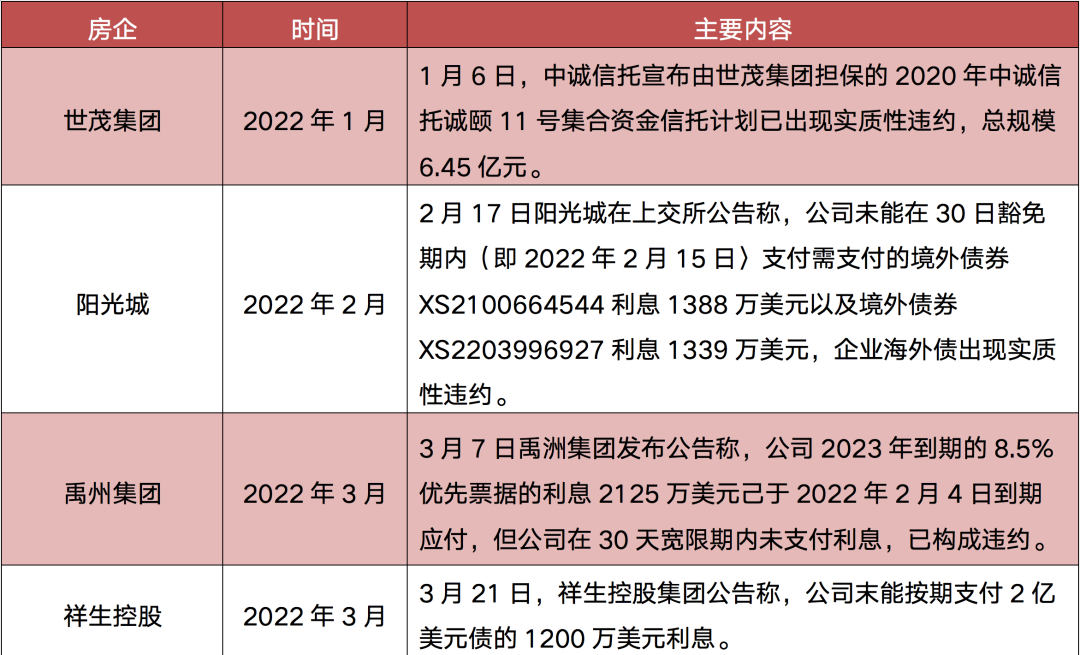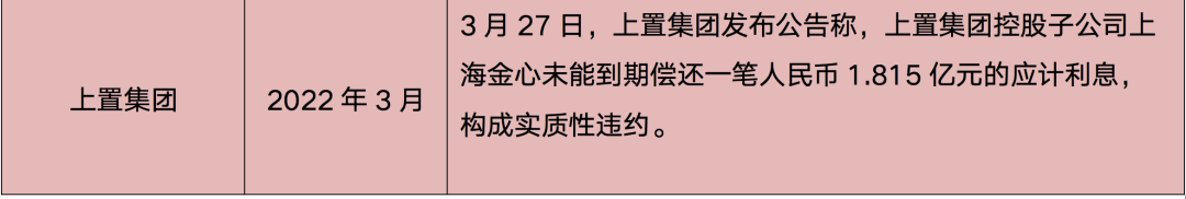 表:2022年部分房企債務(wù)違約情況