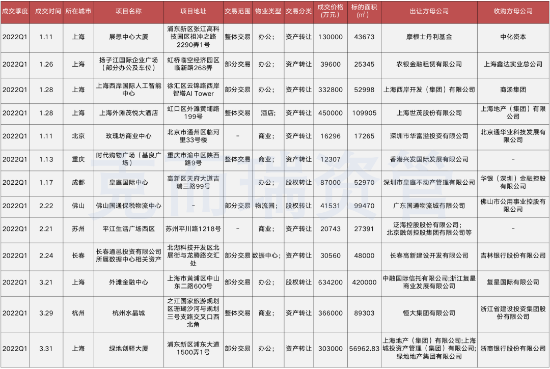 單月來(lái)看,3月有多宗房企項(xiàng)目成交,浙商銀行以30.3億元購(gòu)置綠地控股旗下位于浦東的創(chuàng)驛大廈,作為其在滬機(jī)構(gòu)發(fā)展辦公使用;位于杭州且2012年開(kāi)始規(guī)劃,至今仍未完工的恒大水晶城商業(yè)項(xiàng)目以36.6億元成交,浙江建投為收購(gòu)主體,此舉目的為加快化解其與恒大集團(tuán)及下屬公司應(yīng)收款項(xiàng)逾期問(wèn)題。