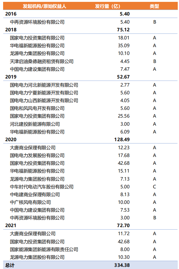 從發(fā)行數(shù)據(jù)看,基礎(chǔ)資產(chǎn)以可再生能源電價(jià)附加補(bǔ)貼為主,發(fā)行金額316.53億元,占比94.66%;發(fā)起機(jī)構(gòu)/原始權(quán)益人以央企為主,其中五大電力集團(tuán)發(fā)行280.40億元,占比83.86%。