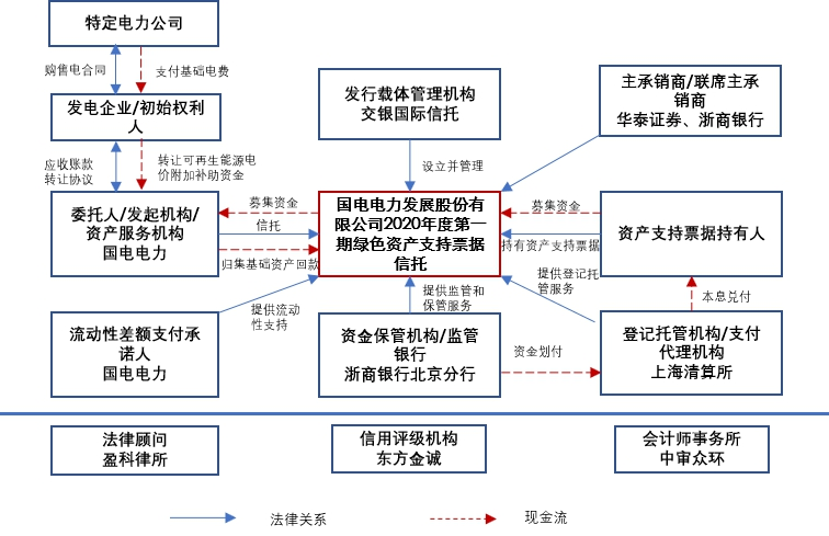 以國(guó)電電力發(fā)展股份有限公司2020年度第一期綠色資產(chǎn)支持票據(jù)為例,其交易結(jié)構(gòu)如下:
