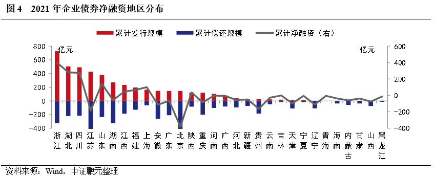 1. 企業(yè)債發(fā)行集中度較高,其中,浙江累計發(fā)行規(guī)模和漲幅最大