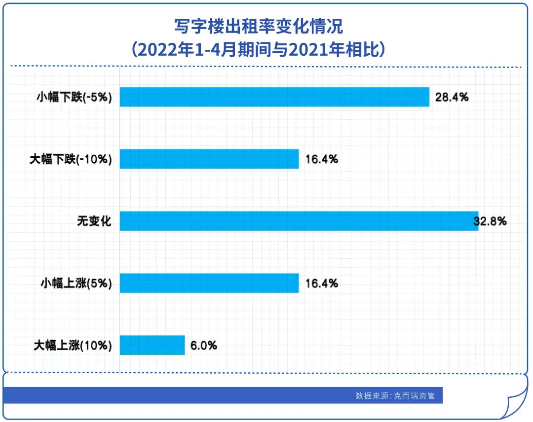 從出租率來看,與2021年同期相比,2022年1-4月期間44.8%出租率出現下降,其中16.4%大幅下跌,無變化占32.8%。