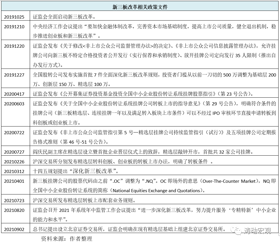 (三)2019年10月25日,證監(jiān)會啟動全面深化新三板改革,隨后推出了設立精選層、建立公開發(fā)行制度、引入連續(xù)競價和轉板機制等一系列改革舉措。