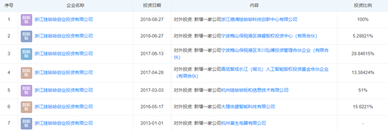 實際上,娃哈哈創(chuàng)投成立已有十余年。根據(jù)公開資料顯示,娃哈哈創(chuàng)投早在2010年11月8日就已成立。從2016年至今,娃哈哈創(chuàng)投共進行過6次對外投資,包括投資寧波梅山保稅港區(qū)祺睿股權投資中心、高瓴智成長江人工智能股權投資基金合伙企業(yè)等。