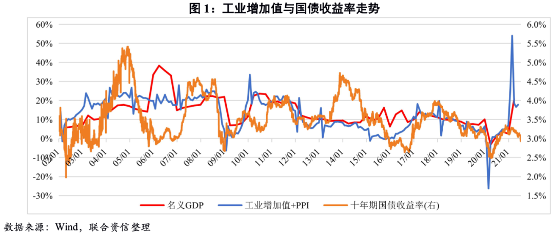 利率水平由資金的供給端和需求端共同決定,名義增長率代表資金的需求,是利率的決定性因素之一,二者間存在較高的相關性。名義增長的代表性指標主要是名義GDP增速,但由于GDP數據的披露頻率較低,本報告以“工業增加值同比增速+通貨膨脹率”作為名義增長率的替代指標,以此跟蹤分析當前利率水平并預判未來走勢。