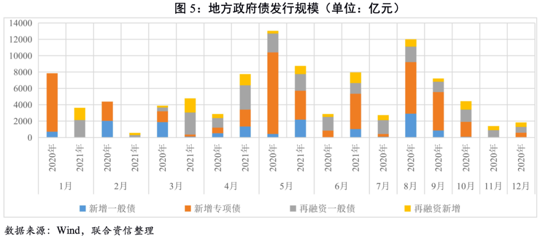 2021年6月,利率債總發行規模環比小幅上升,凈融資規模環比下降,凈融資規模較去年同期小幅減少。從發行節奏看,截至6月30日,國債供給進度顯著慢于往年同期,下半年國債將呈現加快供給的特征;政策性銀行債發行基本符合歷史發行節奏,預計下半年將保持往年節奏;地方政府債方面,由于2021年專項債額度下發較晚導致地方政府債發行節奏也慢于往年,下半年仍有3萬億左右的新增地方債待發,其中新增一般債大約3500億,新增專項債大約2.65萬億。6月28日財政部下發《地方政府專項債券項目資金績效管理辦法》對專項債券資金預算執行進度和績效目標實現情況進行“雙監控”,進一步規范了地方政府專項債券的資金使用。根據歷年發行節奏以及現有地方政府發布的三季度地方債發行計劃來看,今年地方政府債發行節奏大概率依然是三季度發行規模大于四季度。整體看,下半年利率債發行規模較上半年將有所增加。