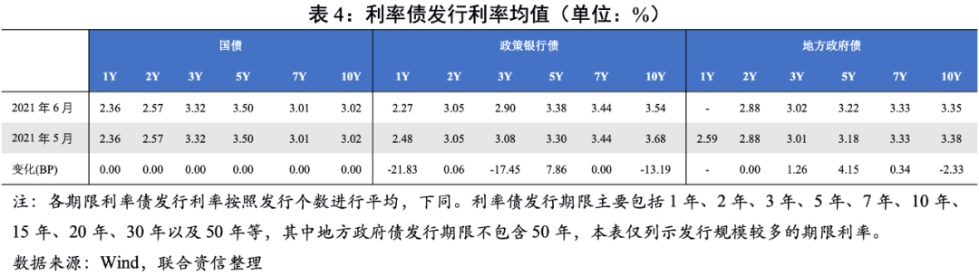 從發行利率看,6月國債均集中在上半月發行,各期限發行利率均值持平5月;政策銀行債發行利率小幅波動,2年期和5年期平均發行利率較5月上行;地方政府債發行利率上半月小幅走高,在官媒發聲[1]疊加央行加大公開市場投放后,市場對資金過度收緊的擔憂有所緩解,下半月地方政府債發行利率小幅下行。整體看,中長期限利率債平均發行利率有所上行。