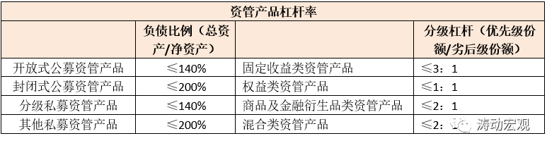 1、負(fù)債比例(杠桿倍數(shù)),資管新規(guī)要求私募資產(chǎn)管理產(chǎn)品應(yīng)當(dāng)設(shè)定負(fù)債比例(總資產(chǎn)/凈資產(chǎn))上限且同類產(chǎn)品適用統(tǒng)一的負(fù)債比例上限。具體來看,分級(jí)私募產(chǎn)品的總資產(chǎn)不得超過該產(chǎn)品凈資產(chǎn)的1.40倍、不分級(jí)私募產(chǎn)品的總資產(chǎn)不超過凈資產(chǎn)的2倍、不得以受托管理的產(chǎn)品份額進(jìn)行質(zhì)押融資。
