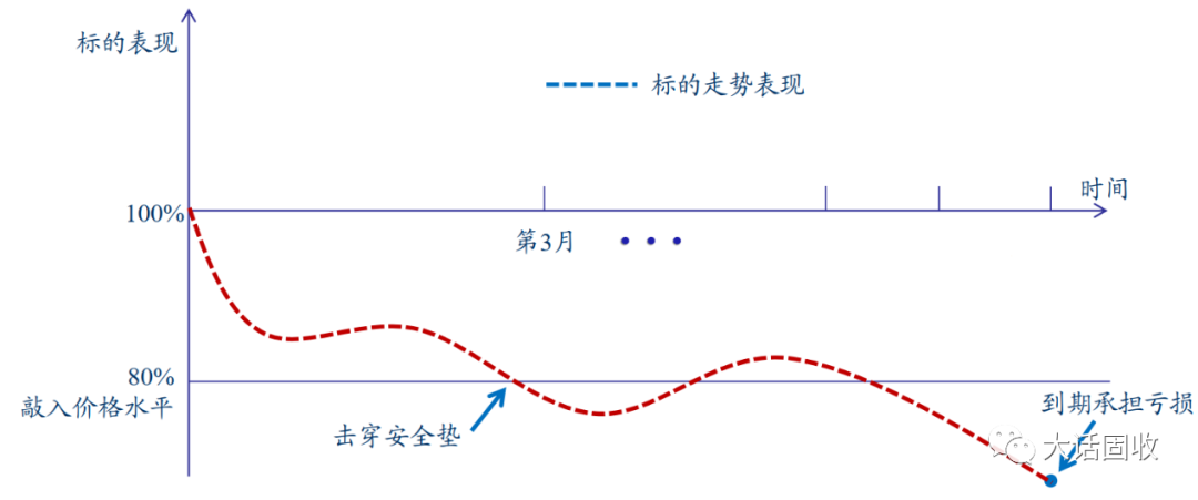 比較差的情況,標的指數在期間跌破了期初價格80%,而且到期的時候還在期初價格之下,那就要承擔本金虧損了。自然,離期初價格越遠虧得越多。