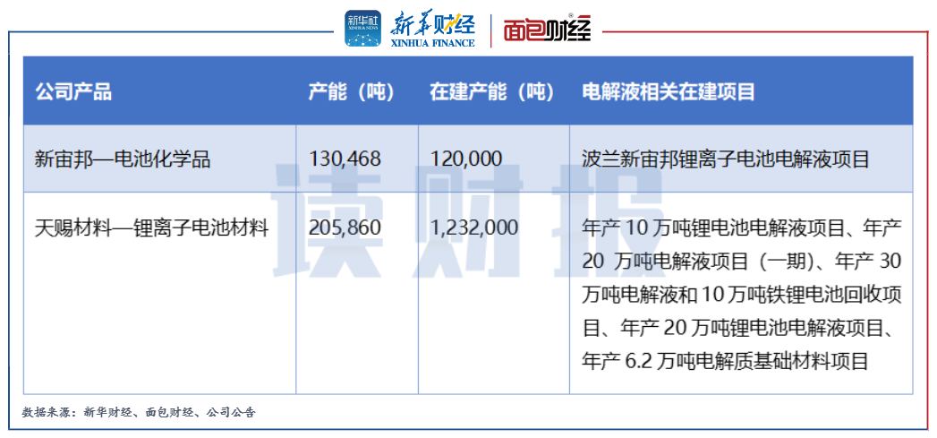 圖5:新宙邦、天賜材料電解液相關大類產品的當前和在建產能