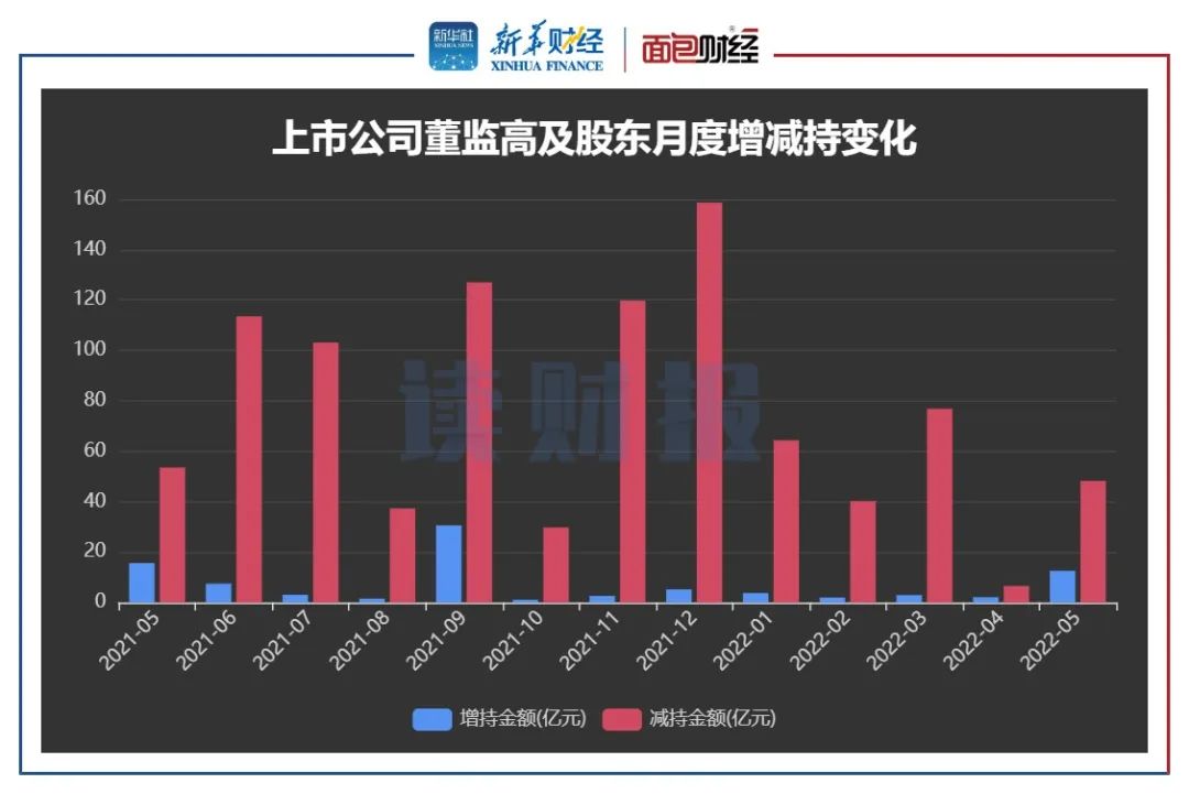 2022年5月,滬深兩市上市公司董監(jiān)高及其關聯(lián)人減持金額合計約48.27億元,涉及126家公司。