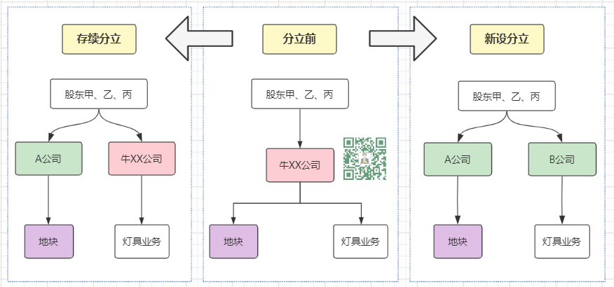 ※:在地產(chǎn)實(shí)操中,一般只采用存續(xù)分立,下文分立均為存續(xù)分立。