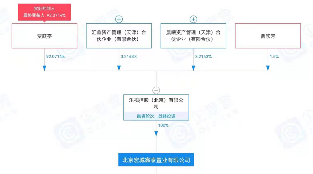 企查查資料顯示,北京宏城鑫泰是樂(lè)視控股(北京)有限公司的全資子公司,其背后的實(shí)際控制人是賈躍亭。