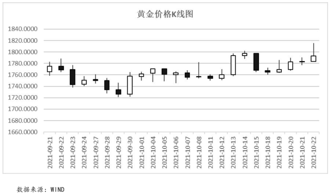 本周,美國(guó)“褐皮書(shū)”的公布顯示出,美國(guó)經(jīng)濟(jì)增速有所放緩的同時(shí),通脹問(wèn)題日益嚴(yán)峻。供應(yīng)鏈的中斷、原材料價(jià)格上漲、能源價(jià)格上漲和勞動(dòng)力的恢復(fù)緩慢都讓人們意識(shí)到這些共同助推高通脹的因素在短期內(nèi)并不能有所改善。高通脹的持續(xù)拉升了市場(chǎng)避險(xiǎn)情緒,黃金作為抗通脹的主要避險(xiǎn)工具,因此金價(jià)走高。截至本周五,COMEX黃金價(jià)格收于1,793.10美元/盎司,周內(nèi)累計(jì)收漲1.45%,連續(xù)第二周上漲。