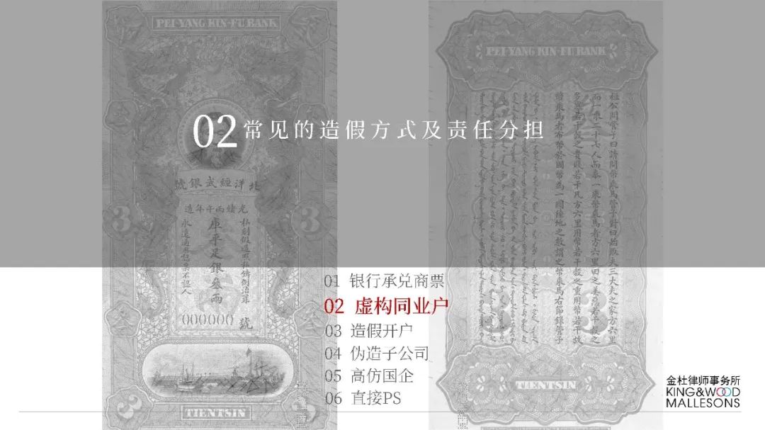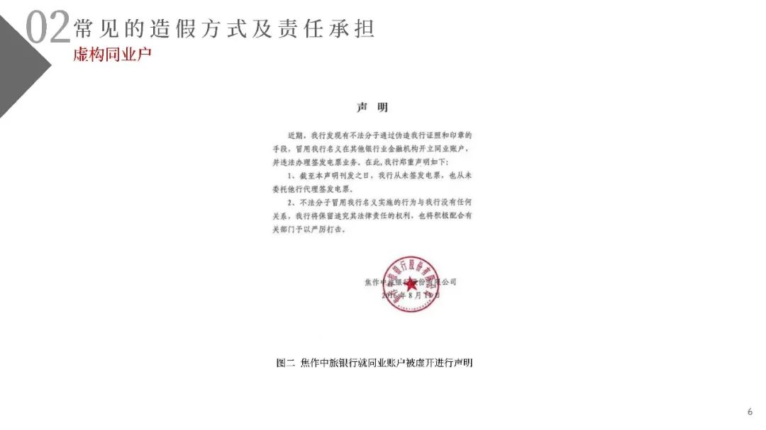(一)不法分子精心設計、反復嘗試,通過在不同的銀行反復多次開戶的方式尋找開戶銀行的系統漏洞。利用部分開戶銀行未對票據行為人與實際開戶企業名稱進行一致性校驗的漏洞,通過在商業承兌匯票的承兌人名稱或保證人名稱上惡意記載為“中國某行”、“某行股份有限公司”或“某某銀行”的方式簽發電子商業承兌匯票,企圖冒充銀行承兌匯票;