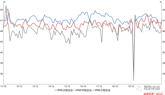 2)受限產影響較大的中、小型企業景氣度顯著提升。中小企業是限產的主要受害者。受能源短缺危機緩解的利好影響,11月,中型企業PMI為51.2%,較上月提升2.6個百分點,結束連續兩個月的收縮走勢,重回擴張區間。小型企業PMI為48.5%,較上月提升1個百分點,表現均好于大型企業。11月份大型企業PMI環比基本持平,保持在50以上水平。