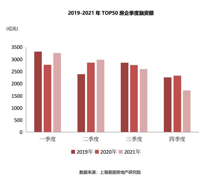 2021年,在“房住不炒”和“三道紅線”、房地產(chǎn)貸款集中度政策出臺背景下,全年政策先緊后松,房企融資呈現(xiàn)供需端持續(xù)收緊的態(tài)勢。