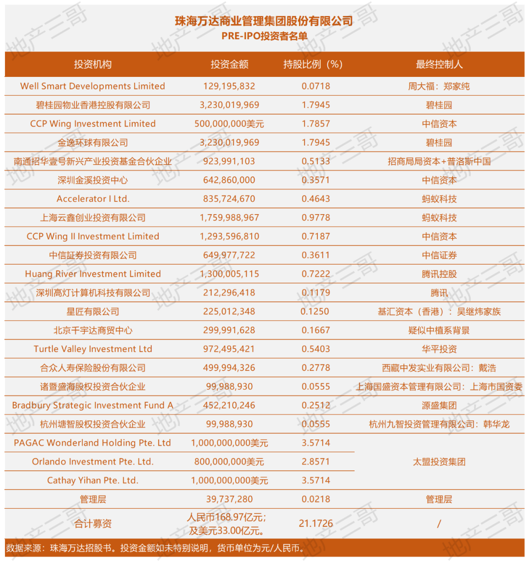 以下分別對投資者和大連萬達商業的股權做個詳解。
