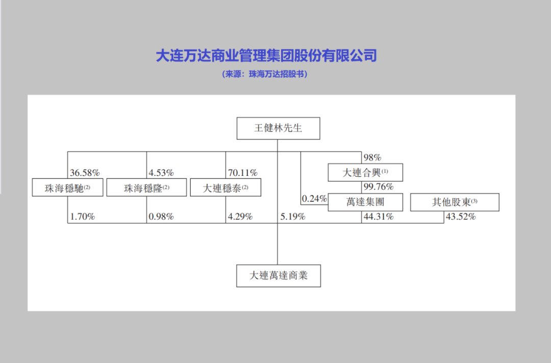 目前,大連萬達商業中,王健林家族合計持股56.35%;透過大連萬達商業,王健林家族在即將上市的珠海萬達商業持股44.14%。