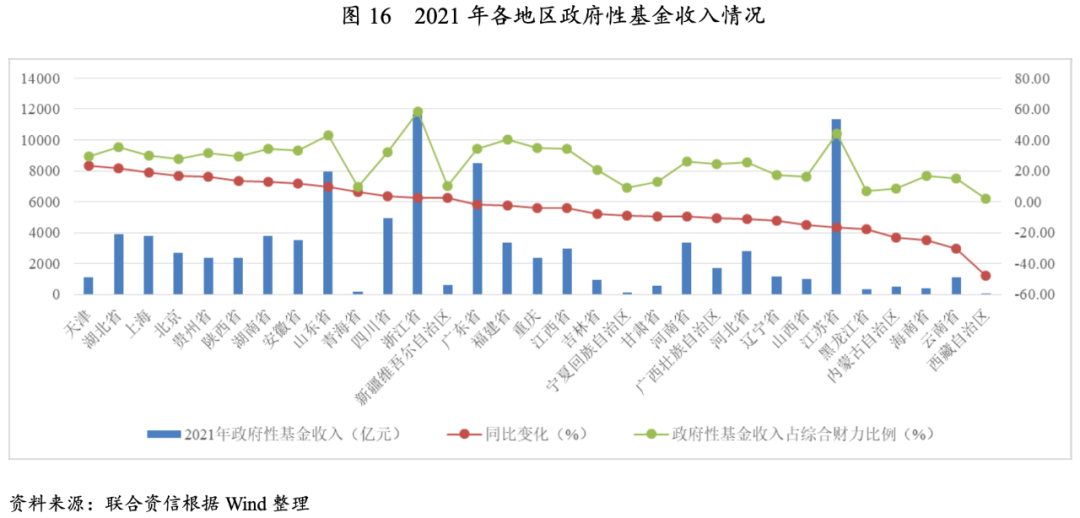 2021年過半數(shù)省份政府性基金收入同比下降,東三省、西南地區(qū)、華北及華中地區(qū)部分省份政府性基金收入下降較明顯,云南下降超30%,海南、內(nèi)蒙古、黑龍江下降均超過20%,山西、遼寧、河北、廣西下降均超過10%。2022年一季度土地市場延續(xù)2021年下半年以來低迷態(tài)勢,短期內(nèi)景氣度難以改善,土地出讓金收入是城投企業(yè)回款及獲得政府支持的重要資金來源,土地出讓金下滑將導(dǎo)致城投企業(yè)債務(wù)化解更加依賴再融資,償債壓力加大。需關(guān)注政府性基金收入下滑以及綜合財(cái)力對(duì)土地財(cái)政依賴度高的地區(qū)城投債償還壓力。