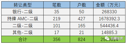 從出讓金額與受讓金額的對比中看,華融資管、山東金融、泰和資管、信達資管、東方資管受讓金額均大于出讓金額,則長城資管、青島資管受讓金額小于出讓金額。