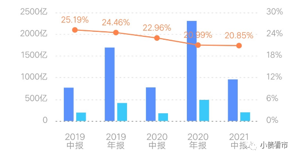 2021年上半年,融創(chuàng)中國(guó)的銷售毛利率為20.85%,自2019年以來(lái)該指標(biāo)就持續(xù)下滑,主要與其2017年土地溢價(jià)有關(guān)。