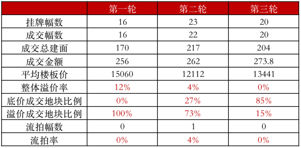 表:無(wú)錫第三輪集中土拍與一、二輪成交情況對(duì)比