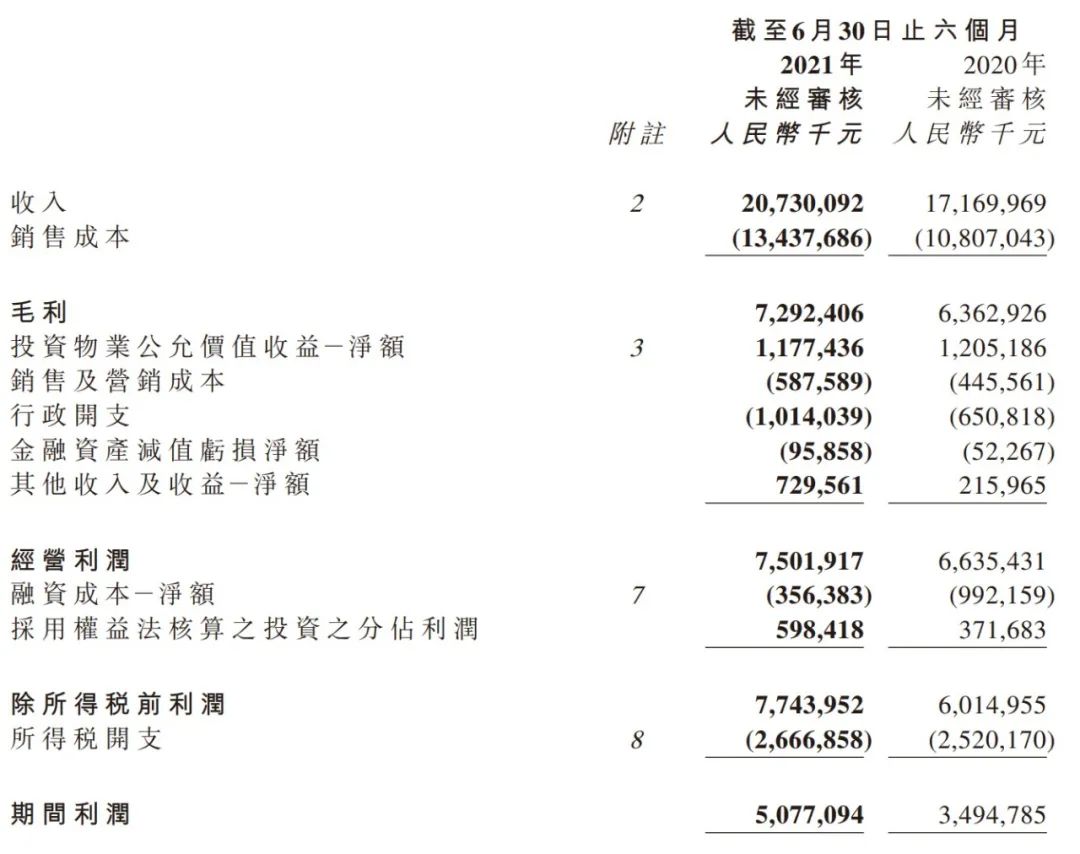 整體營收來看,2021上半年為207.3億元,比2020年同期的171.70億元增加了約20.7%,主要原因是物業(yè)銷售增長。