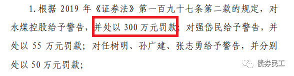 根據(jù)wind披露的公開(kāi)信息,中國(guó)證監(jiān)會(huì)于2021年4月20日分別向華晨汽車(chē)集團(tuán)控股有限公司和永城煤電控股集團(tuán)有限公司下發(fā)了《行政處罰事先告知書(shū)》(處罰字[2021]24 號(hào))、處罰字[2021]25 號(hào))),分別給予兩家公司罰款5630萬(wàn)元和300萬(wàn)元!