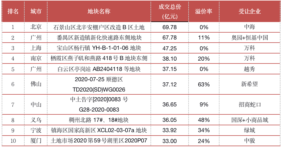9月成交總價最高的10宗地分別來自9個城市,較為分散,意味著熱點城市土地供應中優質土地的比例進一步減少。