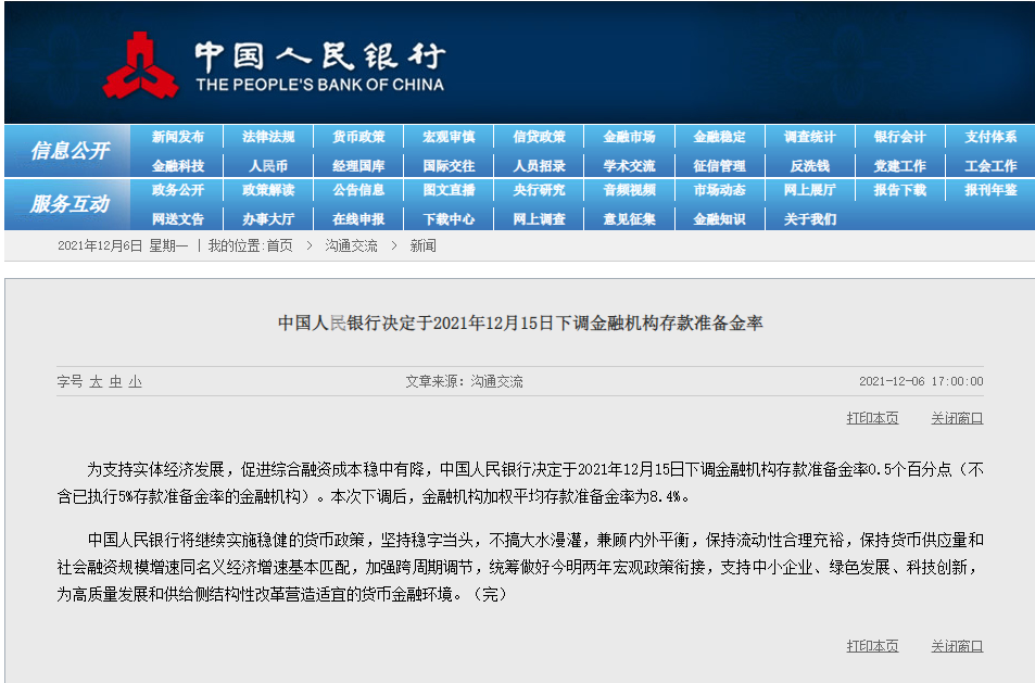 周一17:00:00,央行官網(wǎng)整點(diǎn)掛出了下調(diào)金融機(jī)構(gòu)存款準(zhǔn)備金率的新聞。