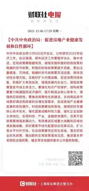今天中央 ZZ 局召開會(huì)議,分析研究2022年經(jīng)濟(jì)工作。會(huì)議強(qiáng)調(diào),要推進(jìn)保障性住房建設(shè),支持商品房市場(chǎng)更好滿足購房者的合理住房需求,促進(jìn)房地產(chǎn)業(yè)健康發(fā)展和良性循環(huán)。