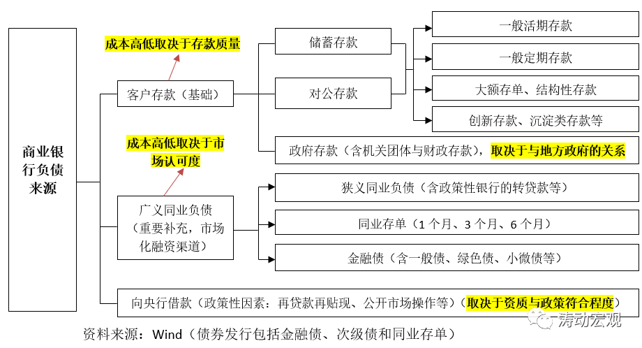 (一)三部分構成:客戶存款、廣義同業負債及央行借款