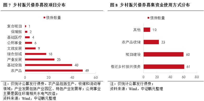 一號(hào)文件明確,擴(kuò)大鄉(xiāng)村振興投入,繼續(xù)把農(nóng)業(yè)農(nóng)村作為一般公共預(yù)算優(yōu)先保障領(lǐng)域。除財(cái)政和信貸資金支持外,結(jié)合現(xiàn)有鄉(xiāng)村振興政策,債券融資可以從以下領(lǐng)域入手:第一,募集資金用途可以用于高標(biāo)準(zhǔn)農(nóng)田建設(shè)、農(nóng)業(yè)相關(guān)科研,技術(shù)升級(jí),設(shè)施農(nóng)業(yè),農(nóng)產(chǎn)品倉(cāng)儲(chǔ)、物流、銷售,生態(tài)治理以及農(nóng)業(yè)相關(guān)保險(xiǎn)機(jī)構(gòu)補(bǔ)充資本。第二,從債券類型看,可以采用綠色債、新型城鎮(zhèn)化企業(yè)債、項(xiàng)目收益?zhèn)⑧l(xiāng)村振興票據(jù)等。