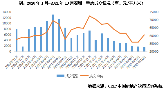 深圳二手房市場更為慘淡,成交規(guī)模斷崖式下跌,成交均價持續(xù)走低。8-10月,深圳二手房成交量不足2千套,僅為去年同期的兩成左右,成交均價已下滑至2019年全年平均線附近。