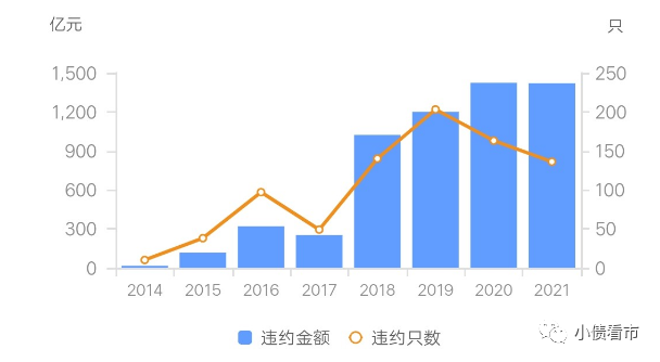 《小債看市》統計,2014-2021年信用債市場共計發生債券違約836只,違約金額高達5766.18億元。