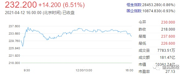 阿里巴巴港股(HK:9988)來(lái)看:今天,在集合競(jìng)價(jià)時(shí)段已經(jīng)大漲近6%,開盤后還一路摸高到漲8.99%,最后收在232.2港元,漲6.51%,一日市值暴增2000多億。