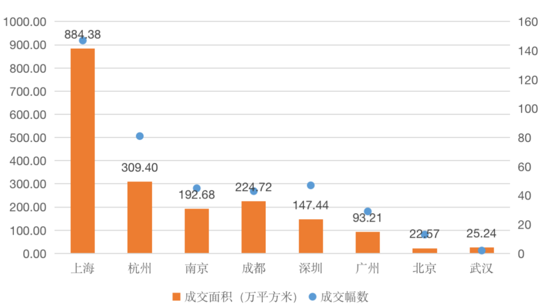 從成交情況來看,10月,重點(diǎn)22城中武漢、上海、杭州、北京、長沙五個(gè)城市完成第二批次集中供地,共成交租賃土地62幅,以拿地配建方式為主,總建筑面積累計(jì)約113.25萬方,值得一提的是,上海10月出讓租賃用地宗數(shù)和建面居五城之首,共成交租賃用地26宗,成交建面55.56萬平方米。克而瑞租售重點(diǎn)監(jiān)測(cè)的核心8城中,上海、杭州、北京、武漢4城成交租賃地塊58幅。