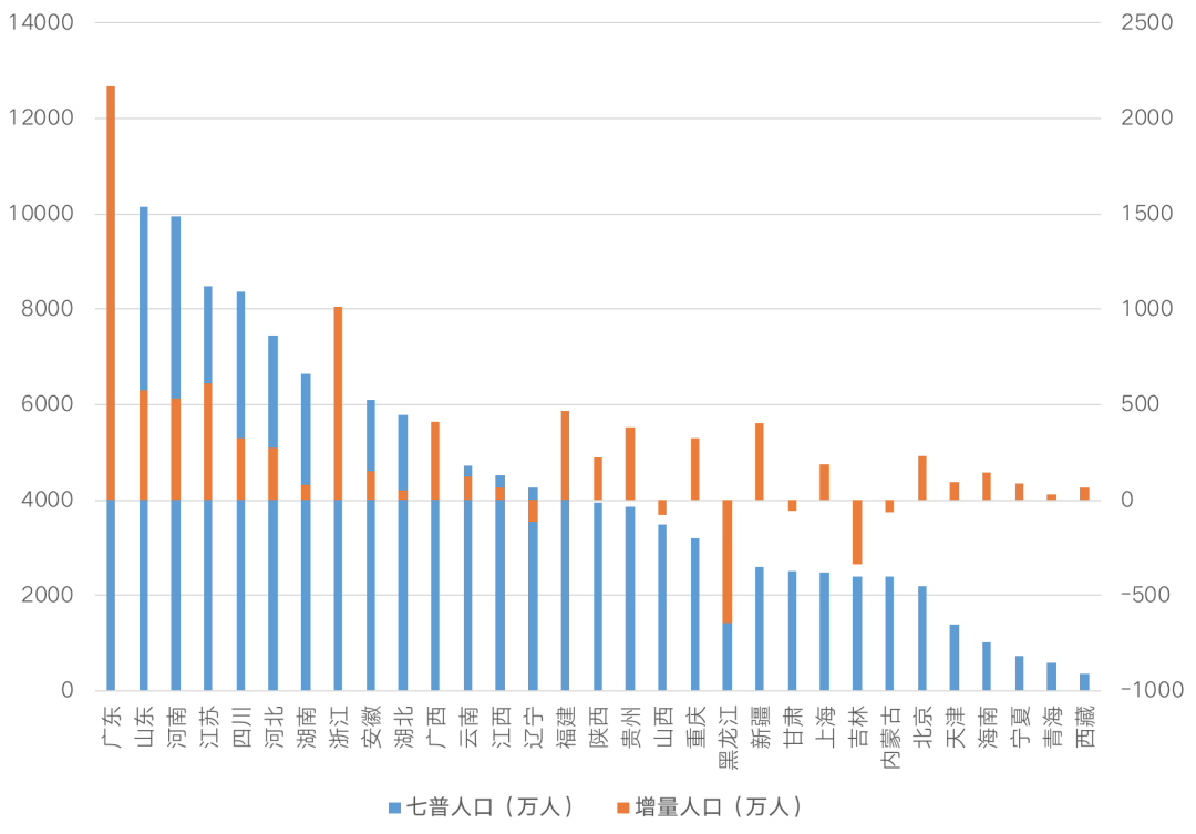 人口向東部發(fā)達區(qū)域聚集,廣東、浙江十年增量超千萬