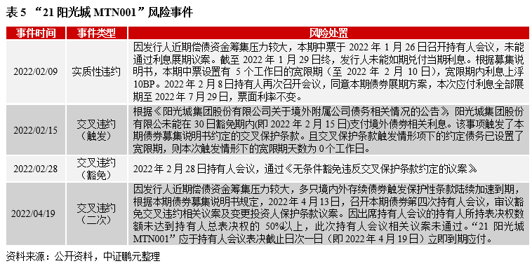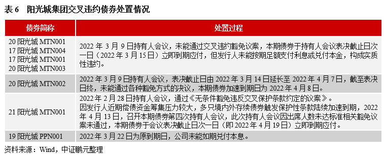 從目前違約案例看,觸發(fā)的保護性條款以交叉違約為主,占比在95%以上,其次是事先約束條款。本節(jié)將以2022年發(fā)生交叉違約的陽光城集團為例,分析保護性條款的應用情況。