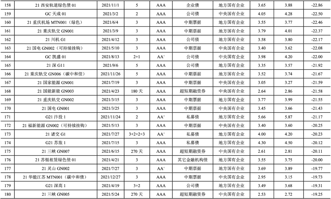 支持多領域綠色債券發行和擴容。2021年1月4日,國家發改委等十部門印發《關于推進污水資源化利用的指導意見》,指出鼓勵企業采用綠色債券、資產證券化等手段,依法合規拓寬融資渠道,推動我國污水資源化利用實現高質量發展。2021年2月22日,國務院印發《關于加快建立健全綠色低碳循環發展經濟體系的指導意見》,指出大力發展綠色金融,發展綠色直接融資,加大對金融機構綠色金融業績評價考核力度。2021年7月27日,發改委等三部委發布《關于鼓勵家電生產企業開展回收目標責任制行動的通知》,指出將完成回收目標并達到國家有關管理要求的責任企業納入家電生產企業“綠色責任名單”,在企業發行綠色債券、綠色信貸審批時優先支持。2021年8月18日,央行等六部委發布《關于推動公司信用類債券市場改革開放高質量發展的指導意見》(以下簡稱《意見》)指出,擴大“雙創”債券、綠色債券發行規模。2021年9月12日,中共中央辦公廳和國務院辦公廳印發《關于深化生態保護補償制度改革的意見》,指出拓展市場化融資渠道,鼓勵符合條件的非金融企業和機構發行綠色債券。2021年9月22日,國務院發布《關于完整準確全面貫徹新發展理念做好碳達峰碳中和工作的意見》,指出支持符合條件的企業上市融資和再融資用于綠色低碳項目建設運營,擴大綠色債券規模。2021年10月18日,國家發改委等四部委聯合發布《關于嚴格能效約束推動重點領域節能降碳的若干意見》,指出拓展綠色債券市場的深度和廣度,支持符合條件的節能低碳發展企業上市融資和再融資。2021年10月24日,國務院印發《2030年前碳達峰行動方案》,指出大力發展綠色債券等金融工具,拓展綠色債券市場的深度和廣度,有助于推動綠色債券市場擴容。2021年11月2日,中共中央、國務院發布《關于深入打好污染防治攻堅戰的意見》,指出大力發展綠色信貸、綠色債券、綠色基金,加快發展氣候投融資,強化對金融機構的綠色金融業績評價。2021年11月10日,國務院辦公廳發布《關于鼓勵和支持社會資本參與生態保護修復的意見》,指出推動綠色基金、綠色債券、綠色信貸、綠色保險等加大對生態保護修復的投資力度;積極支持符合條件的企業發行綠色債券,用于生態保護修復工程。2021年11月27日,國資委印發《關于推進中央企業高質量發展做好碳達峰碳中和工作的指導意見》,指出積極發展綠色金融,有序推進綠色低碳金融產品和服務開發,拓展綠色債券的業務范圍。中央和各部委多次發文有助于拓寬不同領域綠色低碳企業的融資渠道,推動相關領域綠色債券發行。