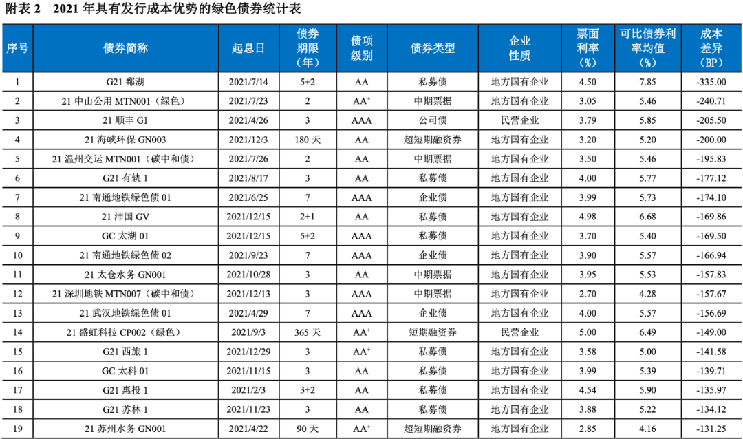 [14]可比債券為綠色債券起息日前后各十五天內起息的同期限、同級別、同券種、同企業性質的非綠色債券,不包括中央匯金公司、中國鐵路總公司發行的債券及可續期債券;對含有選擇權的債券按選擇權之前的期限統計;短期融資券和超短期融資券選用其主體級別,其他券種均選用債項級別。